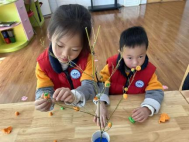 孩子们巧手生花,将普通的橘子皮搭配彩色扭扭棒,创作出别致的手工挂件,在满室清香中体验变废为宝的乐趣。