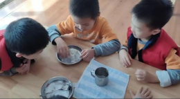 这神奇的“霜”是怎么来的呢?老师带领小朋友们进行了制霜小实验,当“白霜”凝结时,孩子们在惊叹中直观感受到了自然的奥秘,眼中闪烁着发现的惊喜。