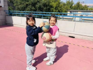 “糖葫芦,串几个?”“串四个”,指令一落,孩子们迅速结对,互相配合将四个篮球稳稳串成“糖葫芦”。游戏不仅锻炼了手眼协调能力,欢快的笑声更让秋日的校园充满了活力。