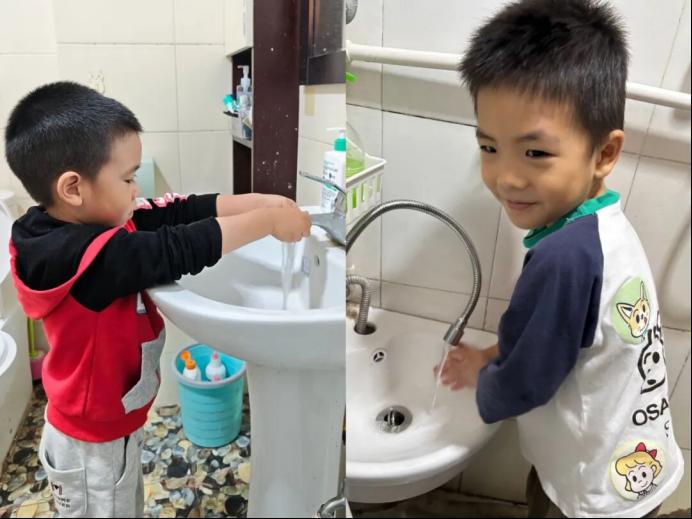 用品消毒:宝贝的水杯、餐具每餐一消毒,采用煮沸或消毒柜高温消毒;毛巾做到一人一巾、专人专用、每日清洗消毒,从源头切断传播链。