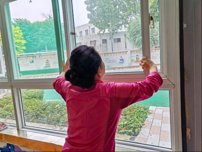 空气消毒:每日晨间、午休后、离园后必开窗通风,每天至少3次,每次不少于30分钟,保持室内空气新鲜。阴雨天或雾霾天会采用紫外线灯进行无人状态空气消毒,杜绝病毒滋生。