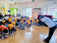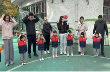 伴随着欢快的音乐,早操时间如期而至。孩子们排着整齐的队伍,精神抖擞地做起伸展、跳跃等动作,一招一式充满童真与活力。家长们站在一旁,看着孩子们在阳光下尽情舒展身体,感受着他们在集体生活中培养的规则意识与协作能力。