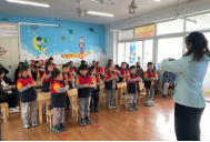快乐的音乐时光……孩子们在节奏律动中感知节拍,用碰铃、响板等打击乐器奏响欢快旋律,在互动游戏里解锁音乐趣味。
