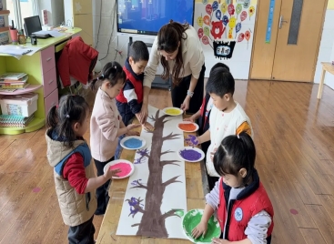 集体创作暖融融,手印画里藏春意。舜耕校区小一班的宝贝们通过集体创作,用小手印勾勒春天的树,直观感受树木生长形态,在创作中萌发对自然的好奇与热爱。一幅手印画,留住春日温暖回忆,也让自然的种子悄然种进童心。
