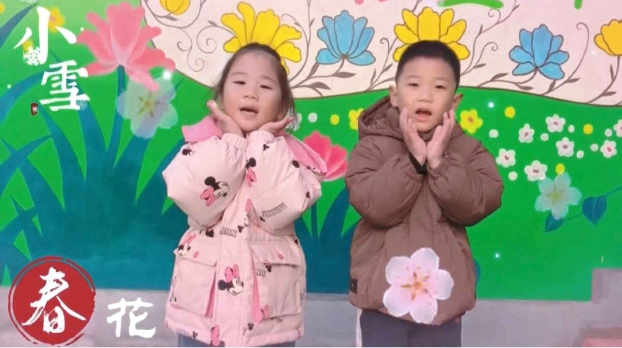 古诗诵唱《小雪》:宝贝们诵唱“檐飞数片雪,瓶插一枝梅”,在诗词中感受小雪之美与传统韵味,萌发对自然与诗词的热爱。