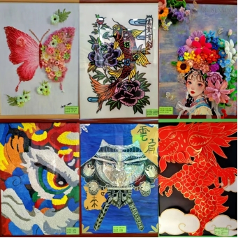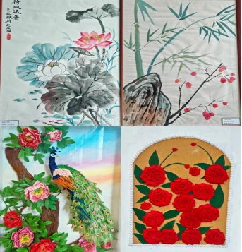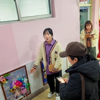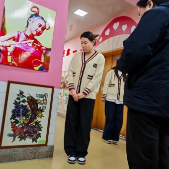 展示现场,幼儿教师们逐一围绕自己的艺术作品从创造思路、主题表现、材料运用、寓意内涵等展开详细介绍。每件作品都凝聚着教师们的巧思和妙手,这些作品不乏有非遗文化艺术民俗、渲染、水墨、刻纸、剪纸、材料对比、视觉冲击等多方面的展示兼具爱国主义教育及艺术美、趣味性与教育性,它们置于幼儿园公共空间,或走廊墙壁、或楼梯拐角处,不仅宣传了自己独一无二的美术作品更是亲手装饰了幼儿园的室内环境,无形之中与幼儿园融为一体,体现教师团队的专业素养,通过欣赏作品也提高了家长们的美术鉴赏力,可谓一物多得,寓意深远。