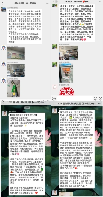 为搭建家园沟通的坚实桥梁,让家长们直观了解幼儿饮食安全与教育教学成果,2025年11月18日、19日下午3:00,山东财经大学幼教服务中心(舜耕校区)、(燕山校区)幼儿园邀请家委会、伙委会成员走进校园,开展参观食堂与教师美工绘画作品考评活动。从舌尖上的安心守护到指尖上的匠心呵护,这场双向奔赴的美好相遇,收获了家长们的一致点赞与满满好评!