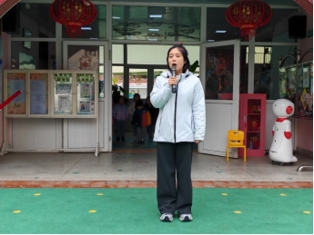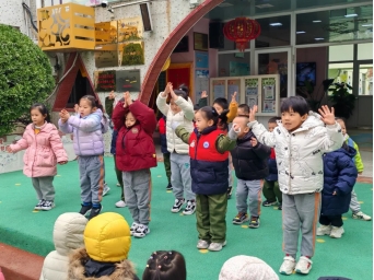 在“国旗下风采展示”环节,中一班的小朋友带来了活泼可爱的音乐律动表演《运动歌》。孩子们在明快的节奏中跳跃、拍手、旋转,展现出如冬日阳光般的朝气与活力,不仅驱散了寒意,也生动传递了“冬日运动身体棒”的健康理念。