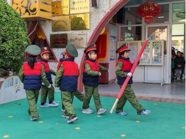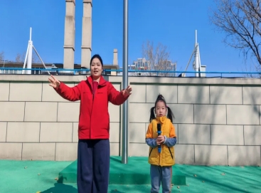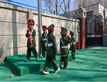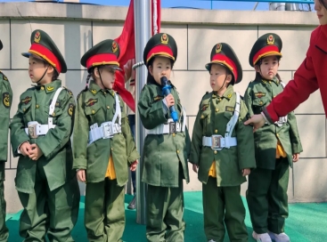 雄壮的《义勇军进行曲》响彻校园,全园师幼肃立注目,齐声高唱国歌。
