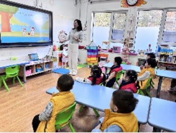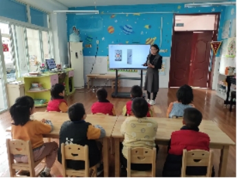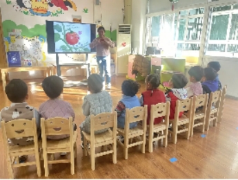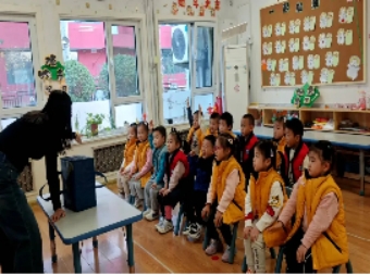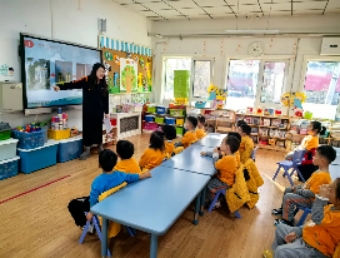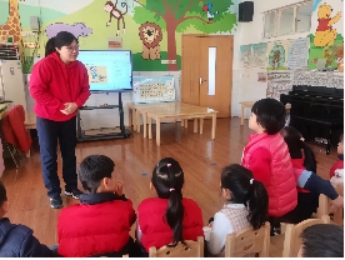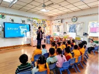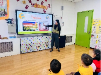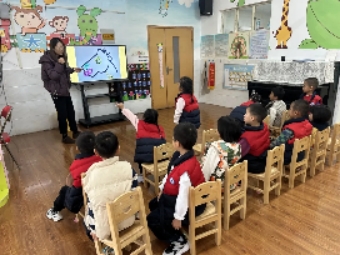 庞皓扬小朋友的妈妈给孩子们进行了一节“你好,小学”的主题活动。孩子们通过图片了解了小学的样子、小学生的一天,对比了小学与幼儿园的区别。孩子们对小学都很好奇,不停地举起小手,询问问题,对小学生活充满了期待。