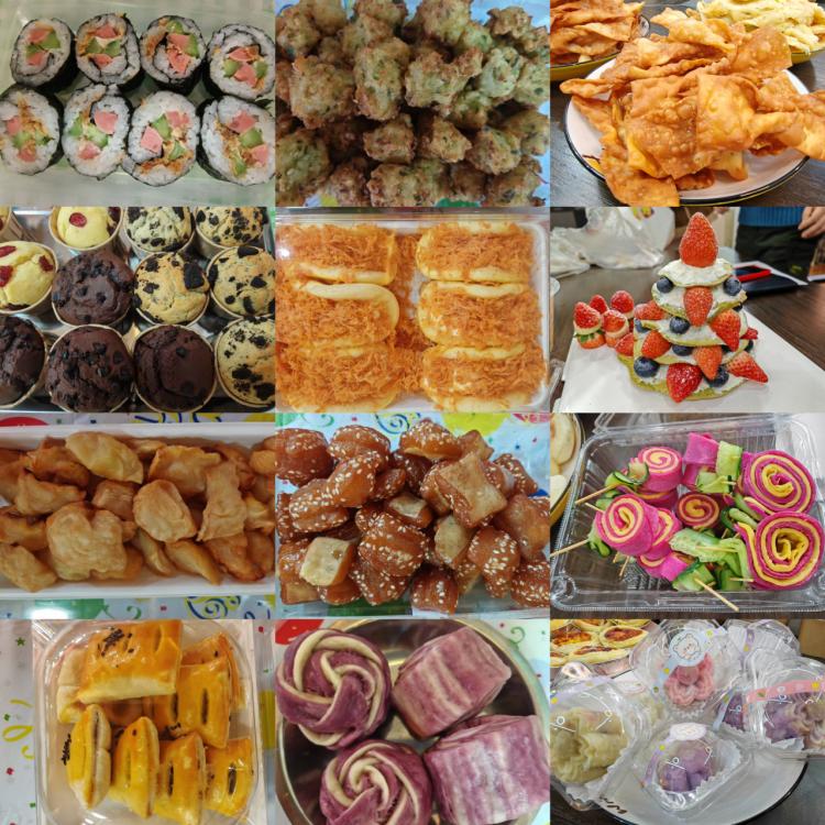 伙委会成员各展厨艺、匠心献技,自制香酥小饼干、糯软松饼、酥脆麻叶、入味瓦罐红烧肉、紧实酱牛肉、酥脆干果小饼干、炸萝卜丸子、苹果干等特色美食惊艳亮相,色香俱全、风味十足,精湛手艺收获现场阵阵称赞与满满好评。