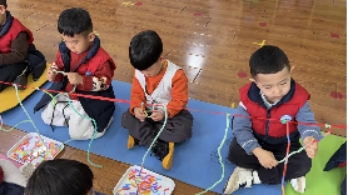 舜耕校区小一班开展自然活动《挂柳条》,以“春分插柳”习俗为切入点,幼儿通过系挂、装饰、触摸柳条,在操作中锻炼手部小肌肉与手眼协调能力,直观感受春日生机,萌发对自然的喜爱。
