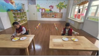 舜耕校区大二班:举办“巧手夹饺迎冬至”游戏活动。孩子们化身“小厨师”,用筷子小心翼翼地将“彩泥饺子”夹入盘中,在趣味比拼中锻炼了手眼协调能力与专注力,现场洋溢着满满的欢乐。