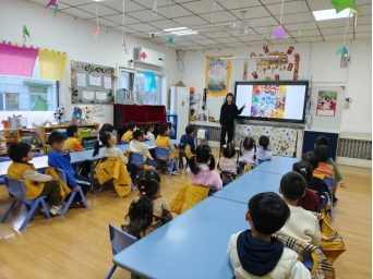 孔孟霖小朋友的妈妈走进小二班课堂,带宝贝们共读绘本《小黄和小蓝》,还开展了有趣的颜色找朋友游戏。孩子们在欢声笑语中,感受着色彩碰撞的奇妙与亲子共读的温暖。