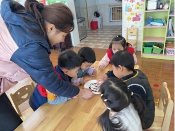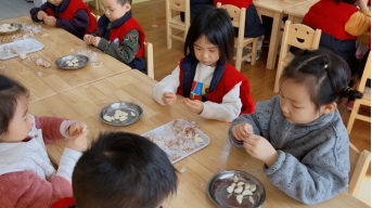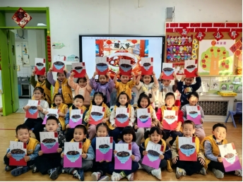 中二班的宝贝们玩起《腊八粥喝几碗》的互动游戏,在欢声笑语中认识了腊八粥的食材,也学会了分享与计数。
