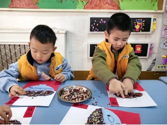 小二班创意美术《腊八粥》,用豆子做腊八粥手工,能让孩子感知传统节日,锻炼手部精细动作,认识五谷杂粮,培养动手能力和对传统文化的喜爱。