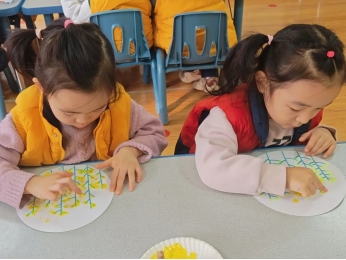 彩笔勾勒花茎,颜料点染嫩黄。中二班孩子们用小手定格春日美好。一朵朵指尖绽放的迎春花,不仅是艺术创作的成果,更是孩子们对春天最纯真的告白,将节气之美藏进画作。