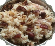 午餐:紫米饭、黄豆海带红烧肉、爆炒有机菜花、八宝粥