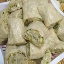 大葱豆腐卷 彩椒杏鲍菇 玉米糁粥