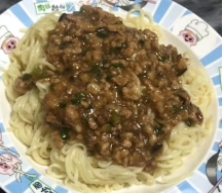 晚加餐:炸酱面、香煎无抗鸡蛋、蒸胡萝卜