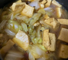 午餐:米饭、软炸蔬菜虾仁、大白菜粉皮炖豆腐、黑米红枣粥