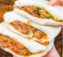 牛肉夹馍 醋溜绿豆芽 小米粥