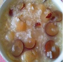 午餐:米饭、土豆红烧肉、爆炒有机菜花、八宝粥