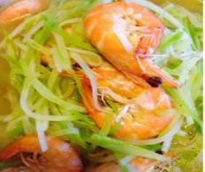 午餐:米饭、萝卜丝大虾、肉末豆腐、小米地瓜粥
