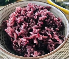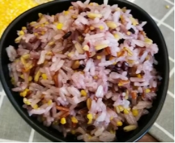 午餐:紫米饭、三色时蔬炖肋排、醋溜土豆丝、红米燕麦粥