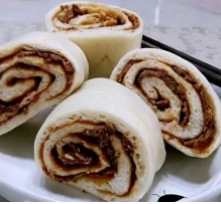 大葱酱肉卷 蒸胡萝卜 小米粥