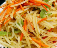 午餐:米饭、红烧小肋排、醋溜三丝、八宝粥