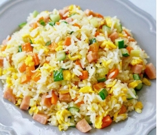 早餐:扬州炒饭、五香无抗鸡蛋、金银米粥