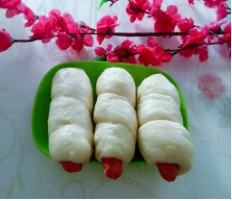晚加餐:中式小热狗、蒸毛芋头、小米粥
