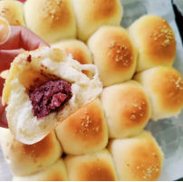 晚加餐:奶香红豆小面包、肉末土豆泥、玉米粥