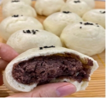 晚加餐:奶香豆沙包、蒸贝贝南瓜、小米粥