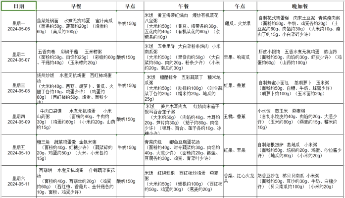 我们致力于为孩子们提供最优质的餐饮服务,让他们在健康成长的同时,享受美食的乐趣。一起来看一下本周预设食谱吧!