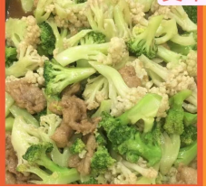 午餐:米饭、土豆炖肉、双花炒肉片、八宝粥