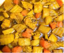 午餐:米饭、咖喱土豆炖鸡、醋溜三丝、小米南瓜粥