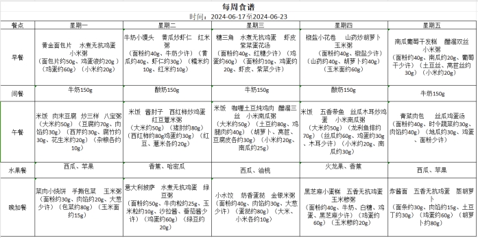 我们致力于为孩子们提供最优质的餐饮服务,让他们在健康成长的同时,享受美食的乐趣。一起来看一下本周预设食谱吧!