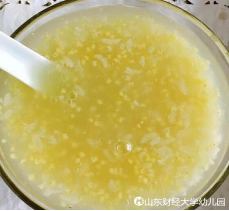 午餐:米饭、黄豆海带红烧肉、爆炒有机菜花、八宝粥