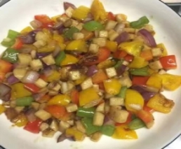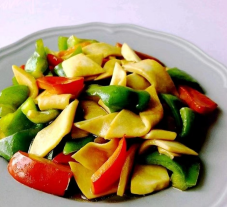 杂粮果仁发糕 彩椒杏鲍菇 玉米粥