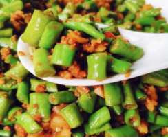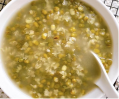 午餐:米饭、玉米山药炖排骨、蒜香豆角、黑米红糖粥