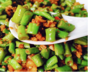 午餐:米饭、糖醋排骨、蒜香豆角、黑米粥