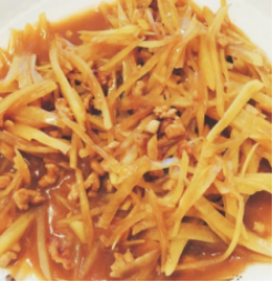 牛奶馒头 肉末土豆丝 玉米糁粥