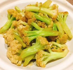 午餐:米饭、咖喱土豆炖鸡肉、爆炒有机菜花、八宝粥