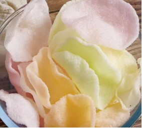 晚加餐:自制牛角面包、五彩虾片、青菜瘦肉粥