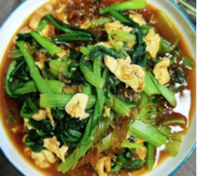 菠菜粉条炒鸡蛋 黑米红枣粥