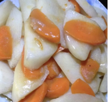 午餐:米饭、萝卜丝大虾、醋溜山药胡萝卜、糯米南瓜粥
