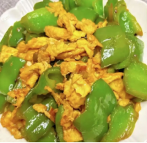 杂粮果仁发糕 青椒炒鸡蛋 小米粥