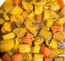 午餐:米饭、咖喱土豆炖鸡肉、爆炒有机菜花、八宝粥